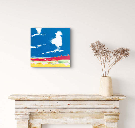 Paysage contemporain Azure 1 - Peinture sur papier en coton encadré